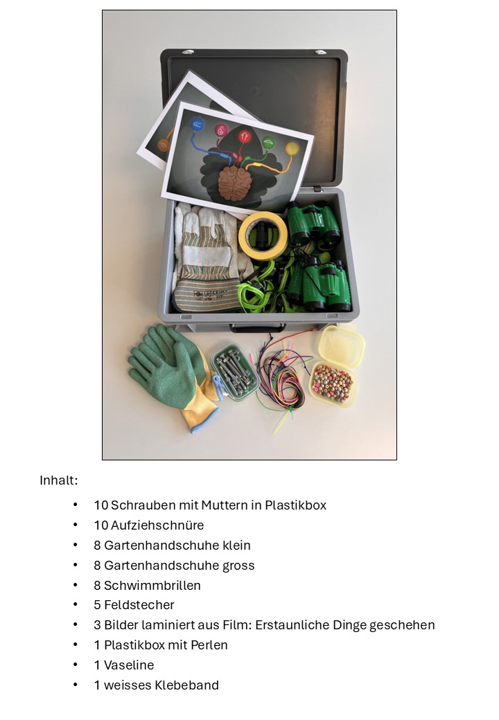 Wir bieten Ihnen die Möglichkeit, unseren umfangreichen Materialkoffer für Klassensensibilisierungen zu erwerben. Dieser Koffer ist ideal ausgestattet, um Sie bei der Umsetzung von Sensibilisierungsmaßnahmen in Ihrer Klasse zu unterstützen – ganz gleich, ob im Kindergarten oder bis zur Oberstufe.